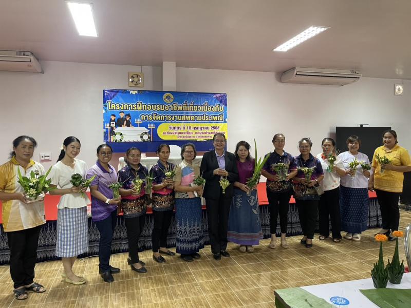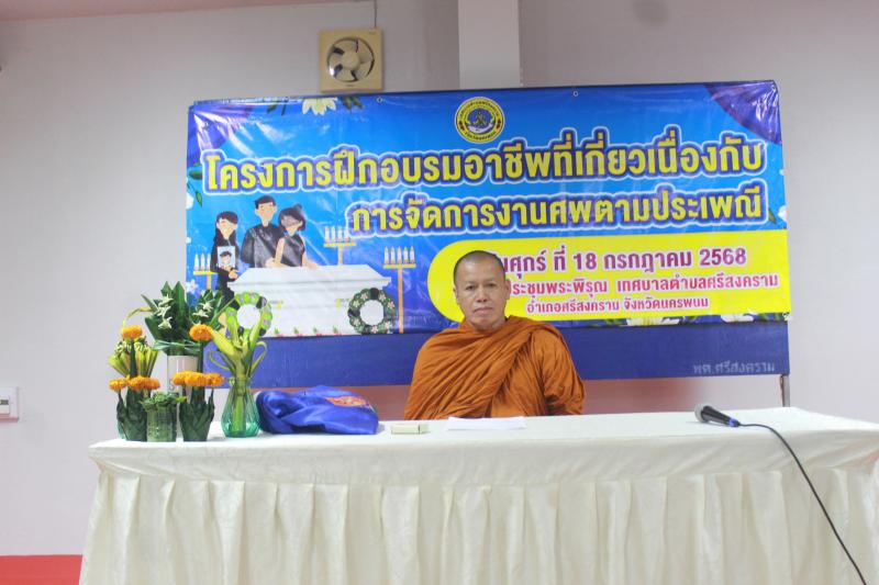 รายละเอียด : นศุกร์ที่ 18 กรกฎาคม 2568 เวลา 09.00 น. นายธราพงษ์ เรืองวรบูรณ์ นายกเทศมนตรีตำบลศรีสงคราม เป็นประธานการฝึกอบรมอาชีพที่เกี่ยวเนื่องกับการจัดการงานศพตามประเพณี ณ ห้องประะชุมพระพิรุณ เทศบาลตำบลศรีสงคราม อำเภอศรีสงคราม จังหวัดนครพนม เพื่อให้ผู้เข้ารับการฝึกอบรมได้รับความรู้ และสามารถปฏิบัติงานพร้อมเผยแพร่การปฏิบัติงานตามพิธีการศพอย่างมีคุณภาพในชุมชน