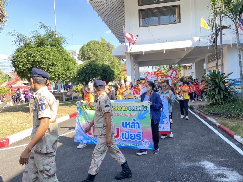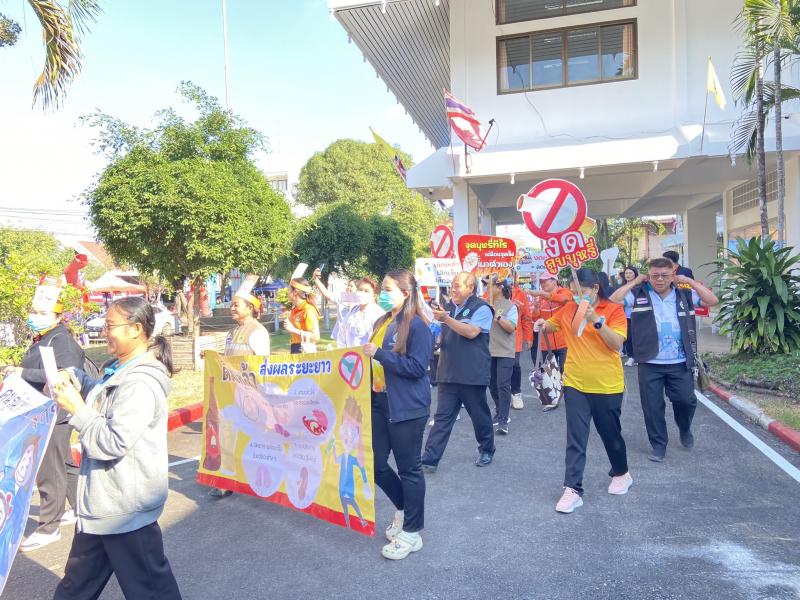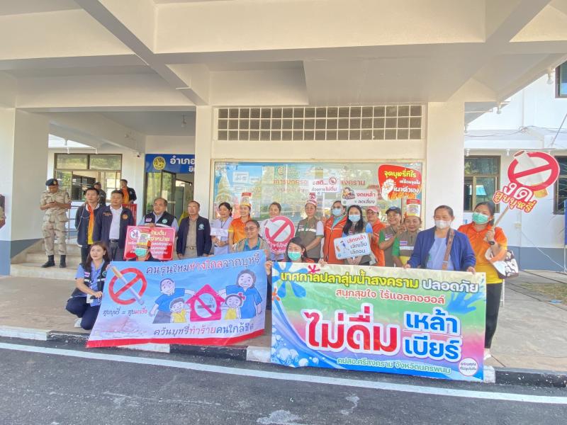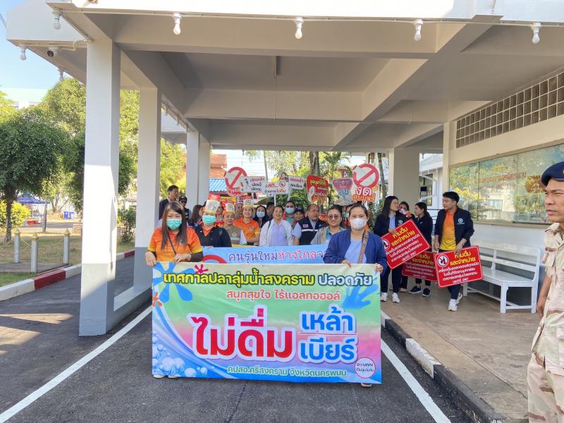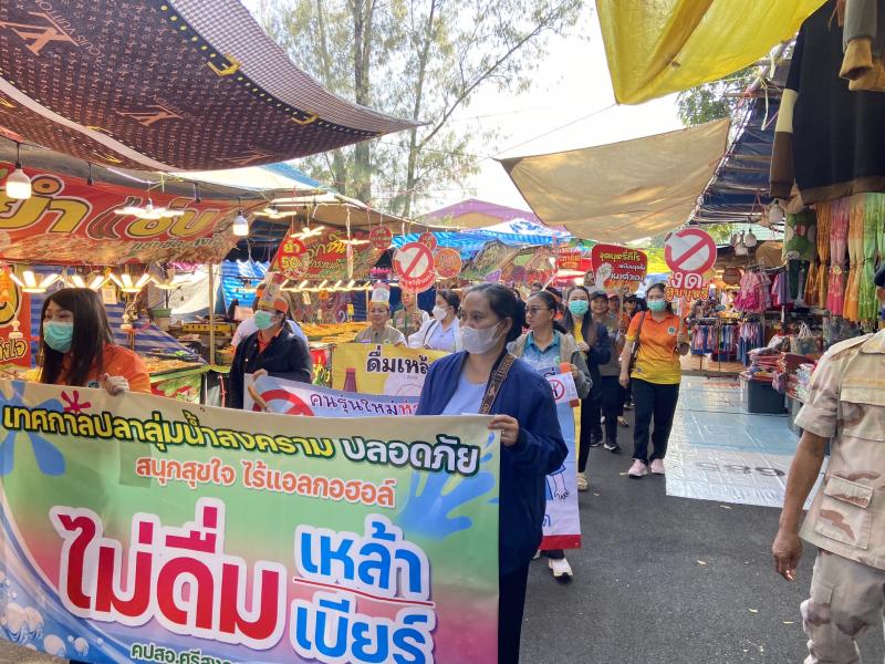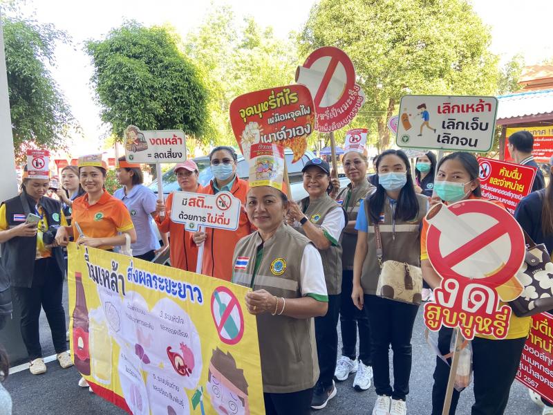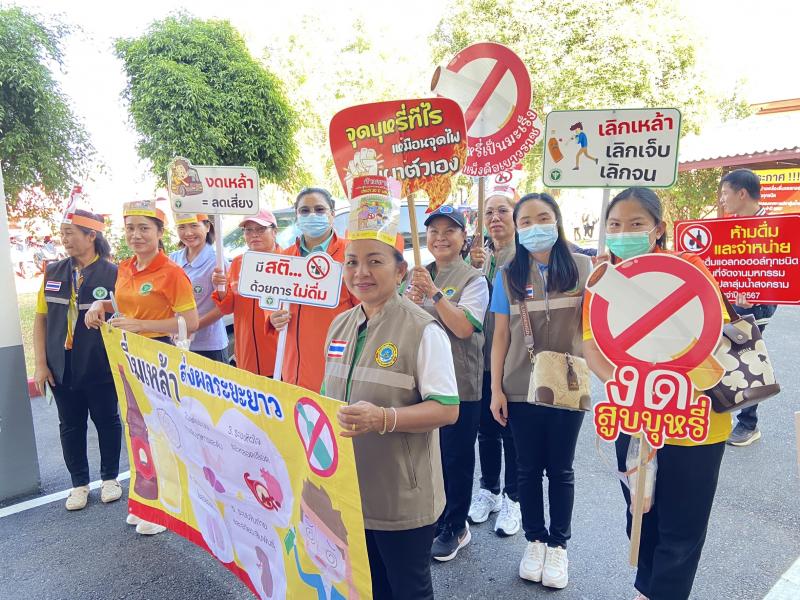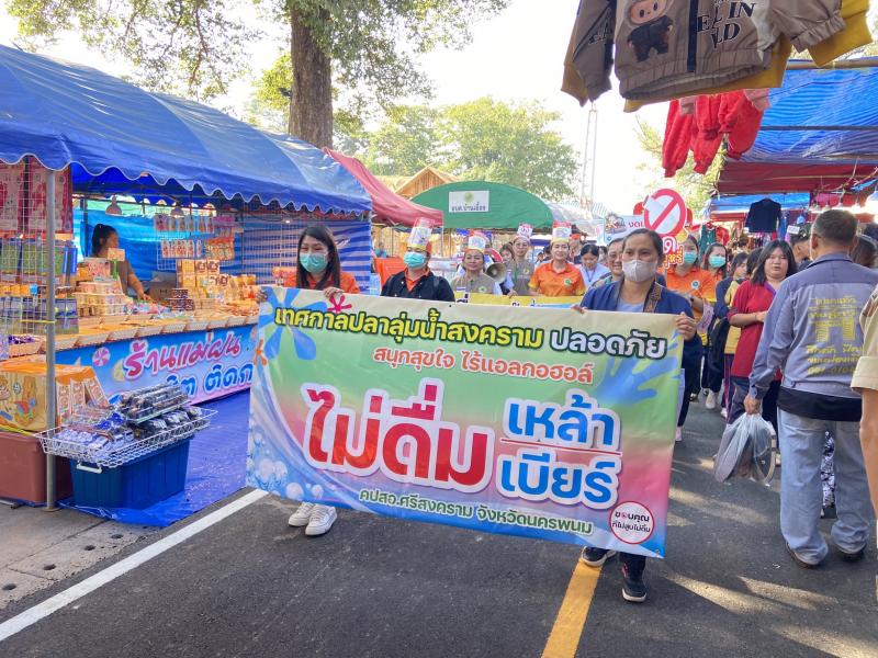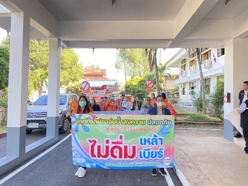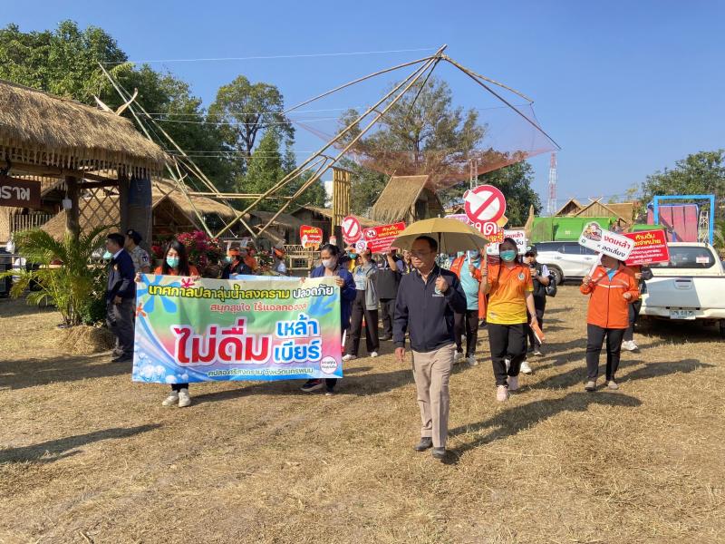 ร่วมกันเดินรณรงค์ ประชาสัมพันธ์ ห้ามดื่มและจำหน่ายเครื่องดื่มแอลกอฮอล์ทุกชนิดและเล่นการพนันในพื้นที่จัดงานมหกรรมเทศกาลปลาลุ่มน้ำสงคราม ประจำปี 2567