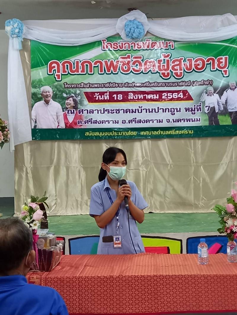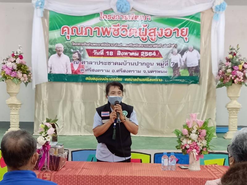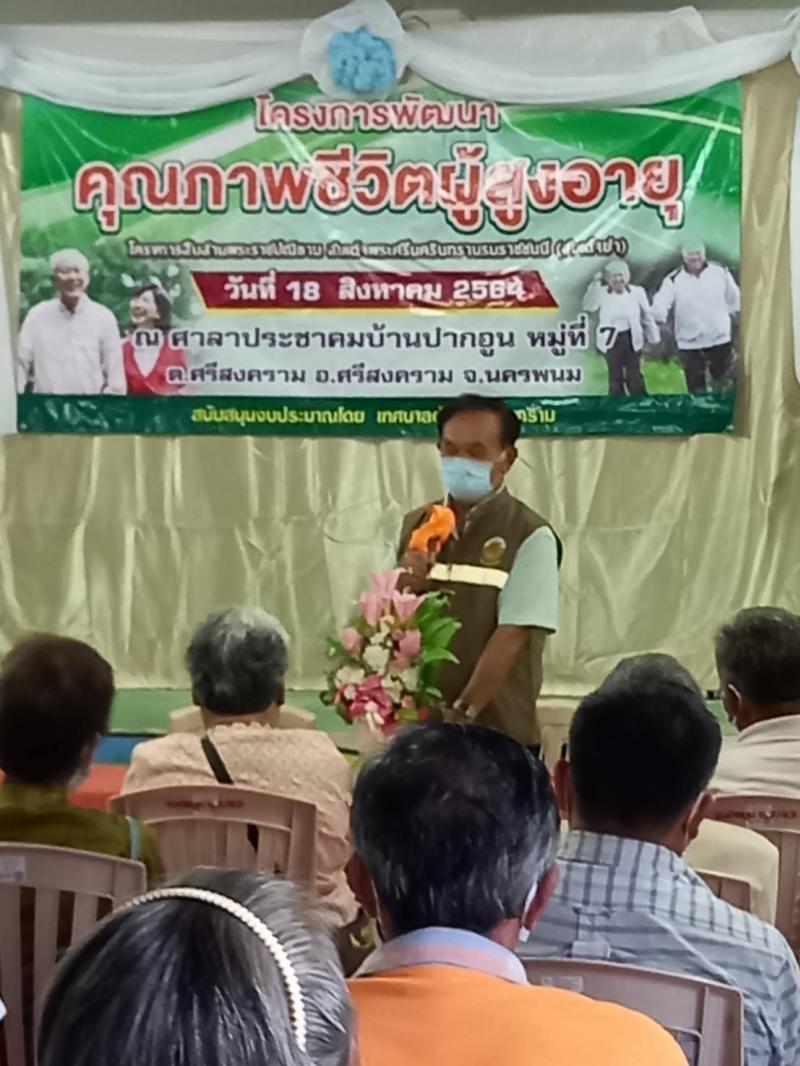 นายยุทธนา เรืองวรบูรณ์ นายกเทมนตรีตำบลศรีสงคราม มอบหมายให้นายสิทธิชัย วงค์วันดี รองนายกเทมนตรีตำบลศรีสงคราม เป็นประธานเปิดโครงการพัฒนาคุณภาพชีวิตผู้สูงอายุ ณ ศาลาประชาคมบ้านปากอูน หมู่ที่ 7 ตำบลศรีสงคราม อำเภอศรีสงคราม จังหวัดนครพนม
