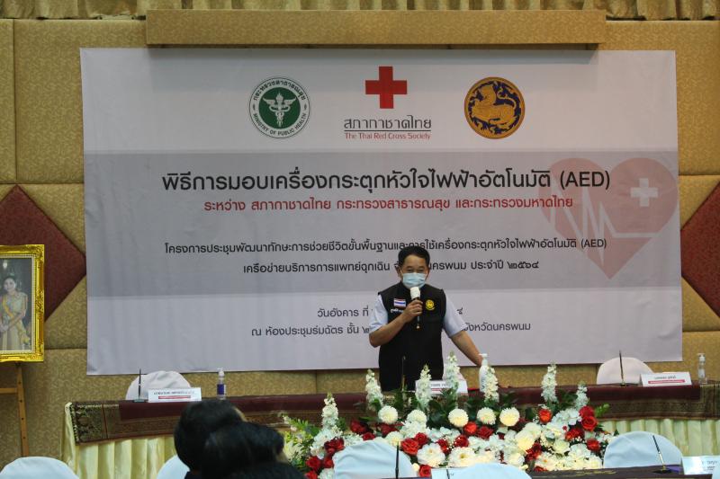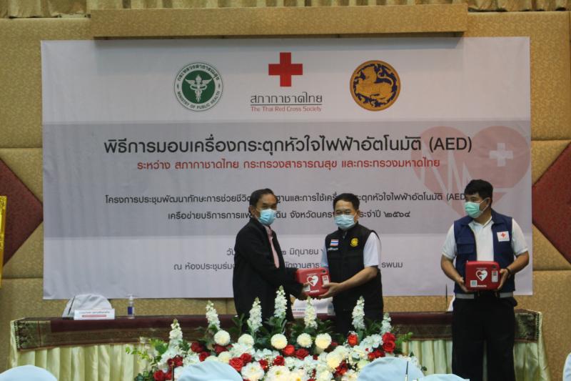ด้วยสภากาชาดไทย ได้ทำการจัดหาเครื่องกระตุ้นหัวใจไฟฟ้าอัตโนมัติ (AED) และดำเนินการส่งมอบให้กับจังหวัดนครพนม ผ่านกระทรวงสาธารณสุข จำนวนทั้งสิ้น 13 เครื่อง เพื่อนำไปติดตั้งในหน่วยงานหรือสถานที่ต่างๆภายในจังหวัดนครพนม เพื่อช่วยชีวิตผู้ป่วยที่มีภาวะหัวใจหยุดเต้นเฉียบพลัน