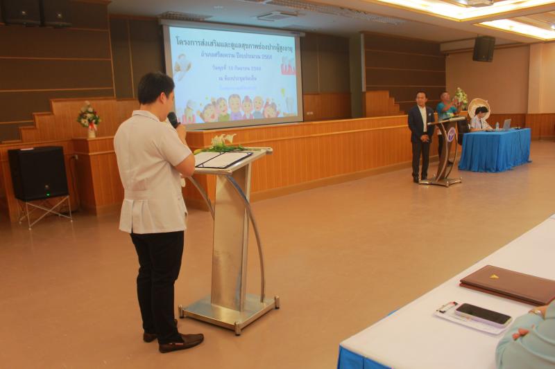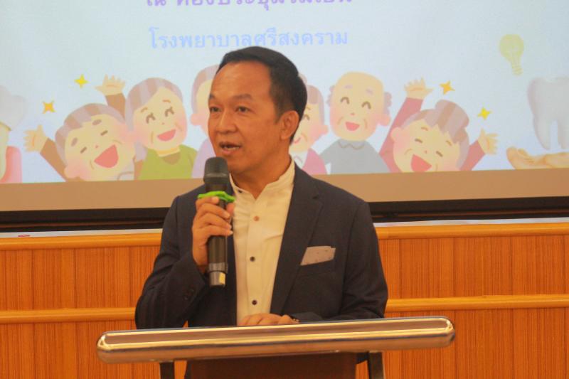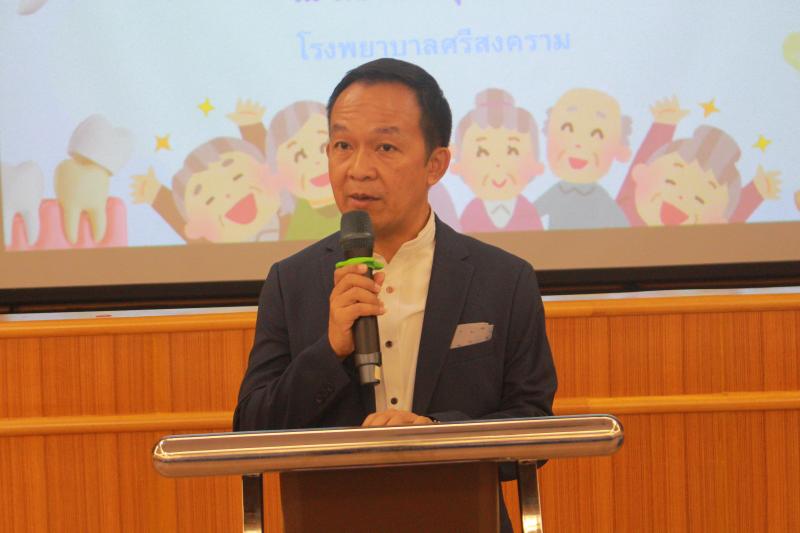 นายธราพงษ์ เรืองวรบูรณ์ นายกเทศมนตรีตำบลศรีสงคราม เป็นประธานเปิดโครงการส่งเสริมและดูแลสุขภาพช่องปากผู้สูงอายุ