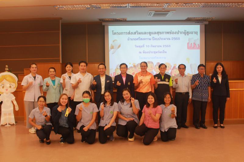 รายละเอียด : วันพุธที่ 10 กันยายน 2568 เวลา 09.00 น. นายธราพงษ์ เรืองวรบูรณ์ นายกเทศมนตรีตำบลศรีสงคราม เป็นประธานเปิดโครงการส่งเสริมและดูแลสุขภาพช่องปากผู้สูงอายุ ณ ห้องประชุมร่มเย็น โรงพยาบาลศรีสงคราม อำเภอศรีสงคราม จังหวัดนครพนม โดยมีคณะผู้บริหาร ปลัดเทศบาล และสมาชิกสภาเทศบาลตำบลศรีสงคราม ร่วมเป็นเกียรติในพิธีเปิด การจัดโครงการในครั้งนี้ มีวัตถุประสงค์เพื่อให้ผู้เข้าร่วมโครงการมีความรู้ความเข้าใจและทักษะในการดูแลสุขภาพช่องปาก สามารถดูแลตนเองได้ สามารถเผยแพร่ความรู้และทักษะที่ตนมีส่งต่อให้ผู้อื่น ร่วมกันสร้างสังคมผู้สูงอายุที่มีคุณภาพชีวิตที่ดี ทั้งการพูด ความมั่นใจในการเข้าสังคม และทานอาหารได้อย่างสุขใจ นำไปสู่สังคมผู้สูงอายุที่มีชีวิตชีวา มีสุขภาพช่องปาก สุขภาพร่างกายที่แข็งแรงและสุขภาพจิตที่แจ่มใสกันถ้วนหน้า จัดโดย โรงพยาบาลศรีสงคราม ได้รับการสนับสนุนงบประมาณจาก กองทุนหลักประกันสุขภาพเทศบาลตำบลศรีสงคราม