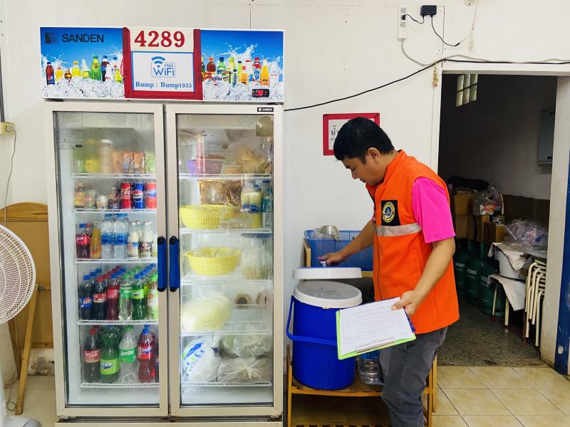 ตรวจสอบมาตรฐานร้านอาหารและแผงลอยในเขตเทศบาลตำบลศรีสงคราม