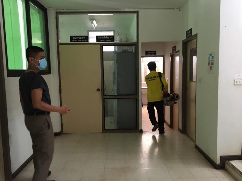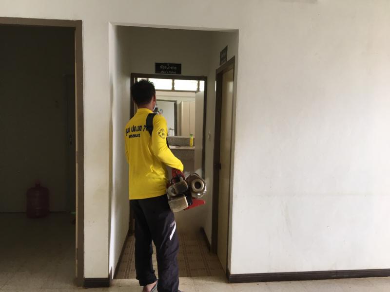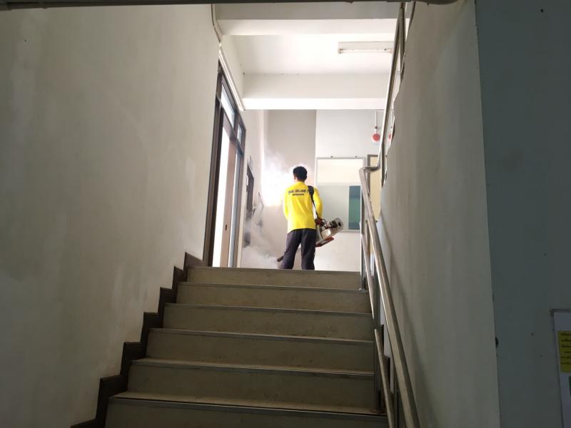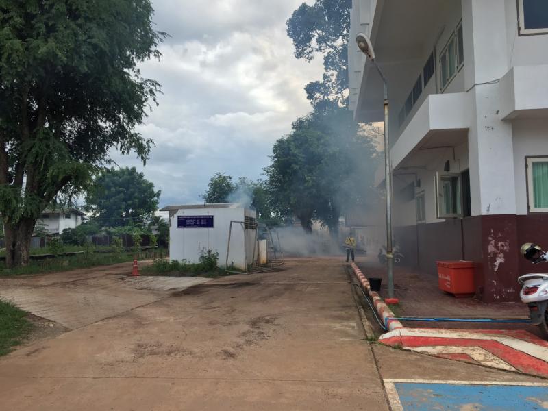 พ่นหมอกควันกำจัดยุงลายป้องกันไข้เลือดออก ณ สถานีตำรวจภูธรศรีสงคราม