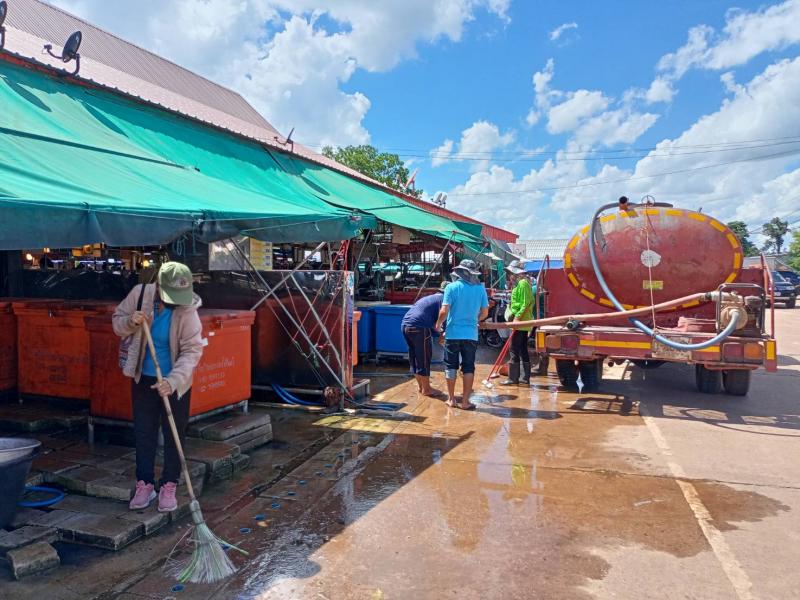 เทศบาลตำบลศรีสงคราม โดยกองสาธารณสุขและสิ่งแวดล้อม ดำเนินการล้างถังน้ำแข็ง และพื้นที่อยู่โดยรอบบริเวณตลาดสดเทศบาลตำบลศรีสงคราม อำเภอศรีสงคราม จังหวัดนครพนม เพื่อรักษาความสะอาด ให้ถูกสุขอนามัย