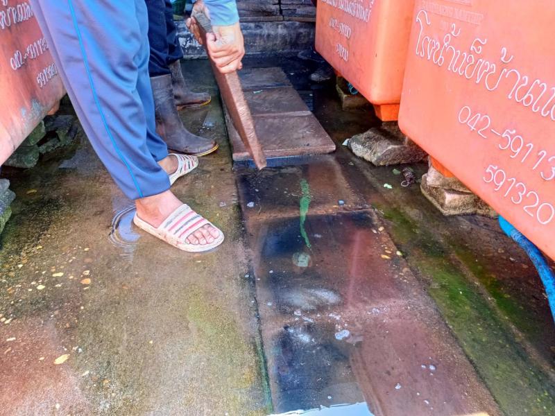 ล้างถังน้ำแข็งโดยรอบตลาดสด